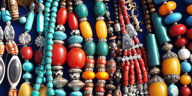 Nepal jewelry features vibrant, handcrafted pieces reflecting rich cultural traditions. Often made from silver, copper, or gold, and adorned with turquoise, amber, lapis lazuli, or coral, these items include intricate necklaces, earrings, bangles, and rings.