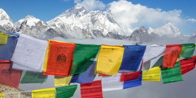Nepal prayer flags are vibrant, rectangular cloths in five colors (blue, white, red, green, yellow) symbolizing the elements. Adorned with sacred mantras and prayers, they flutter in the Himalayan breeze, spreading blessings, peace, and compassion. Handcrafted in Nepal, their rich hues and spiritual significance bring serenity and cultural beauty to any space.